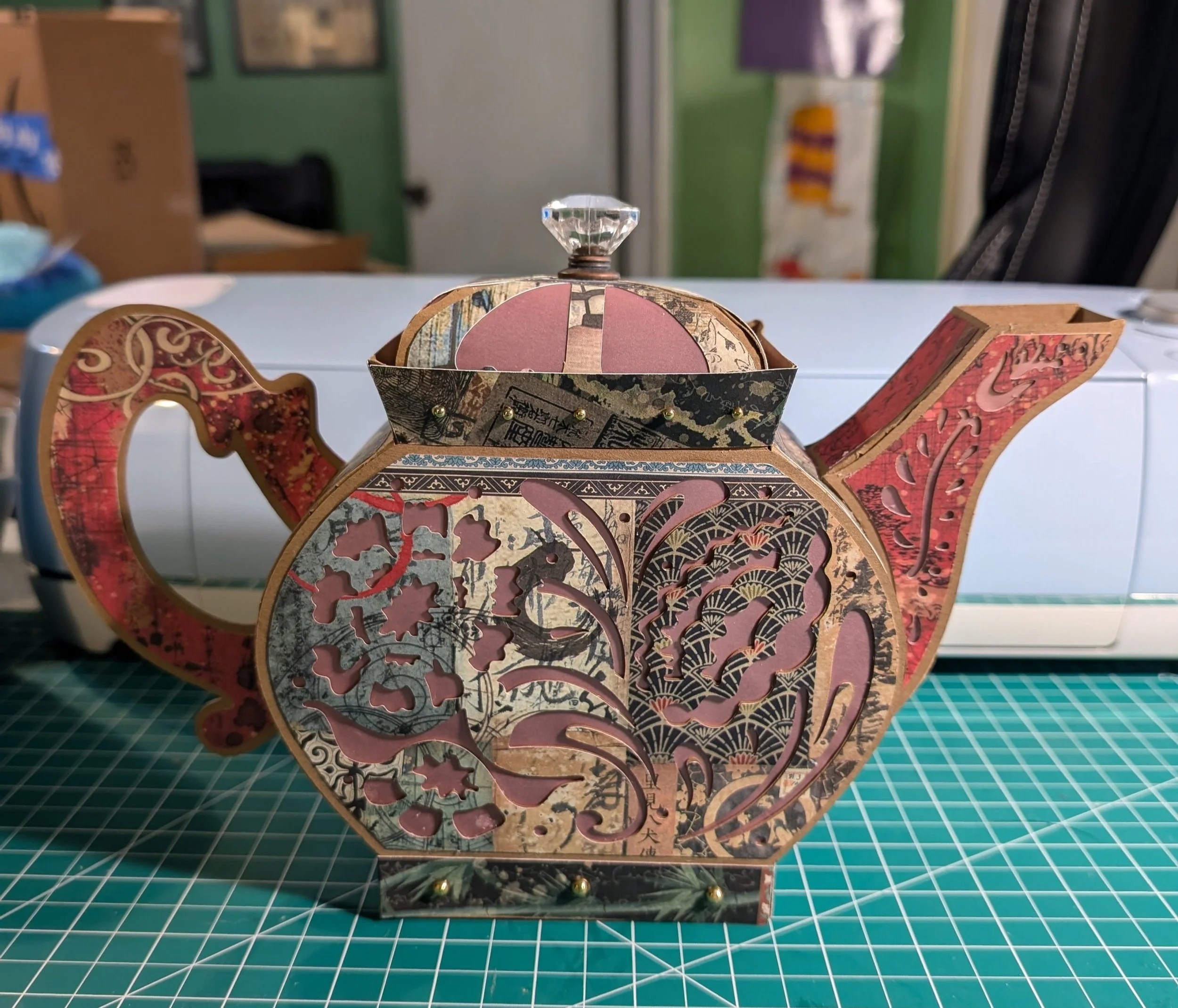 Made of high-quality card stock, vellum and hardware elements. This mixed media item will be a conversation piece. Fairy lights are inside and create a beautiful glow to finish out the evening in style.